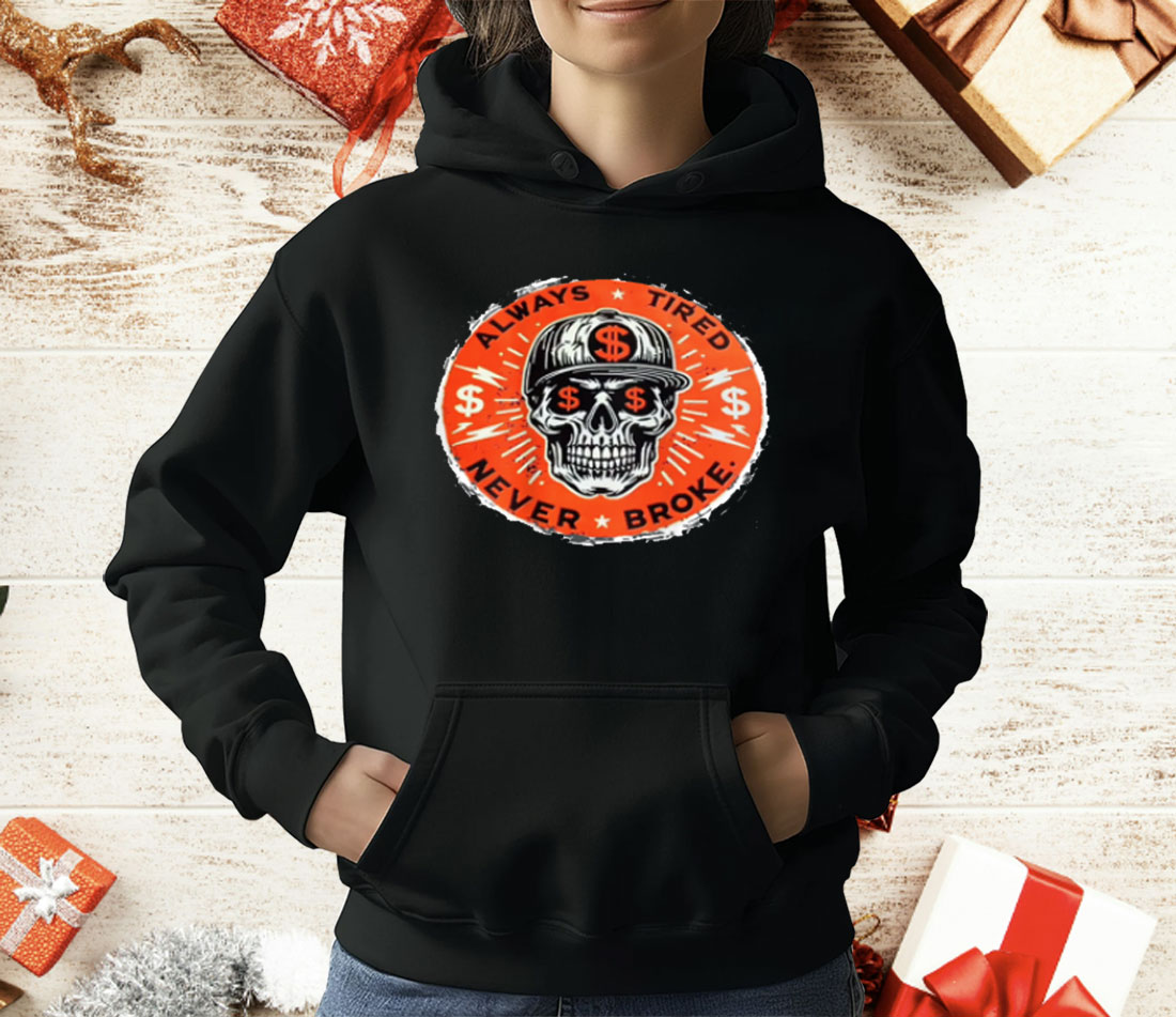 With its affordable price point and high-quality construction, this t-shirt offers great value to the customer, allowing them to express their individuality and personality without breaking the bank. Add the Always Tired Never Broke Skull T-Shirt to your collection today and let your style speak for itself.