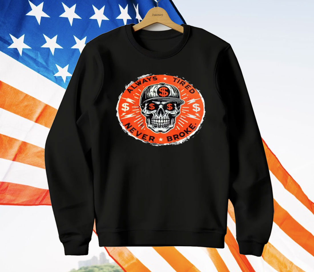 Always Tired Never Broke Skull T-Shirt