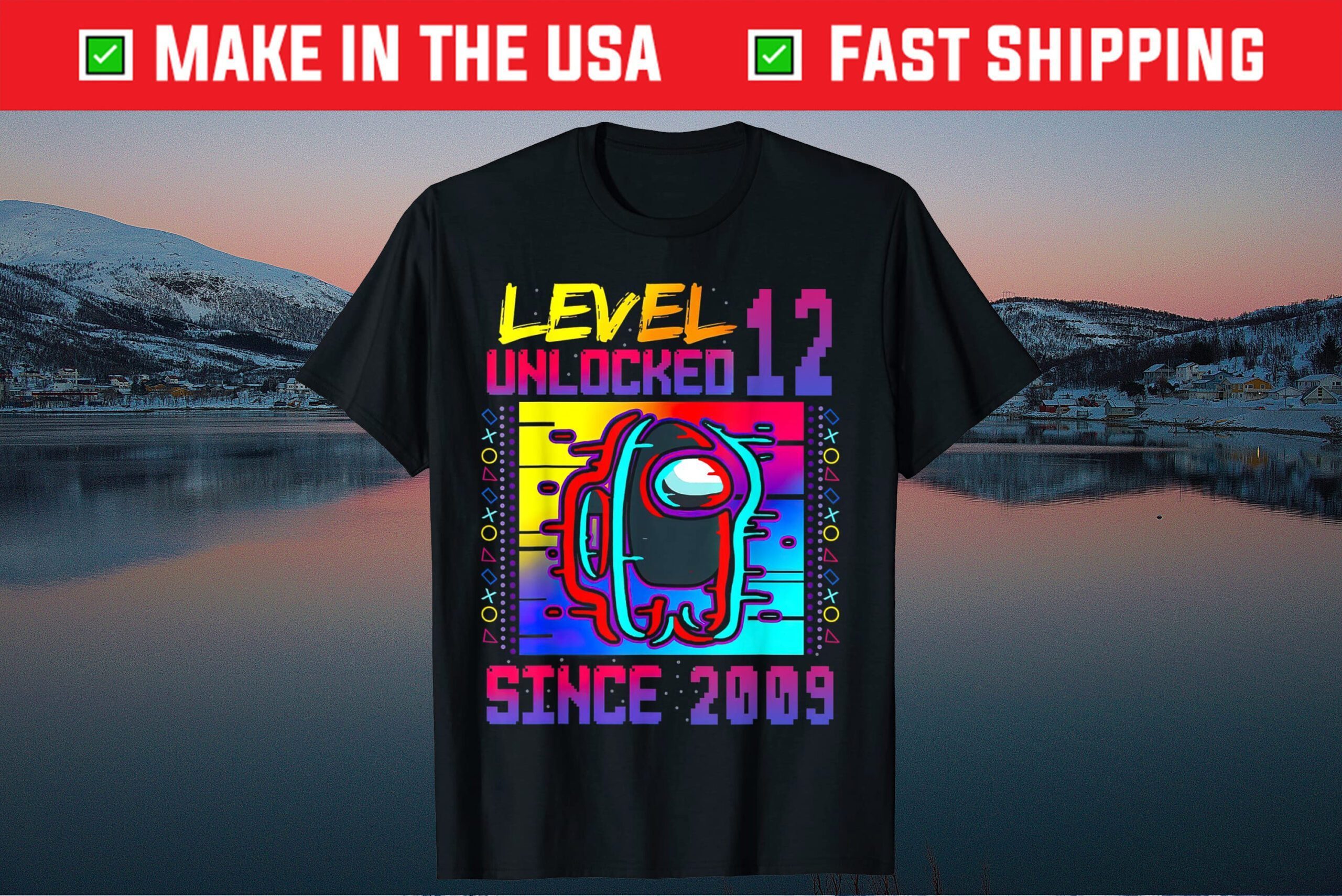 Disstressed Level 12 Unlocked Among With Us 12th Birthday Classic T-Shirt
