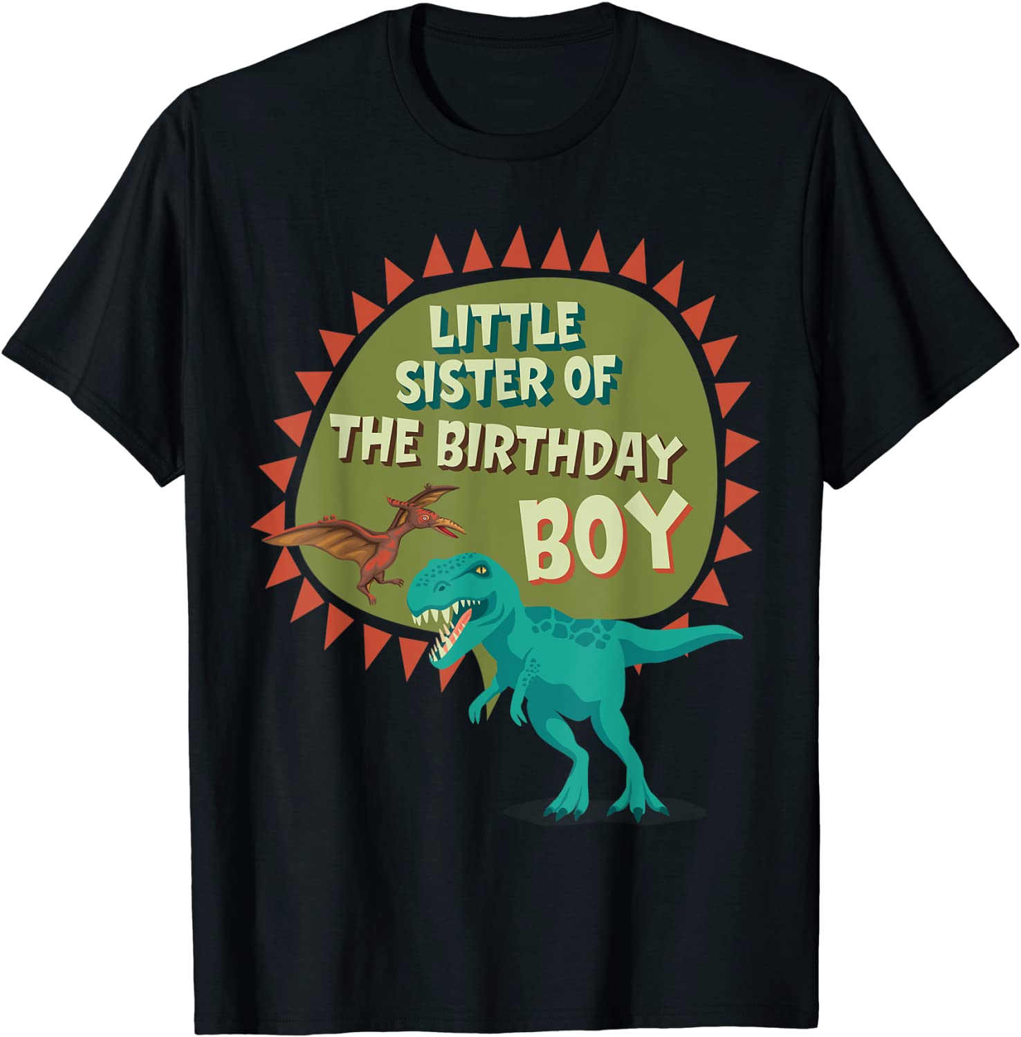 Little Sister Of Birthday Boy Dinosaur Theme Matching Family Tee Shirt