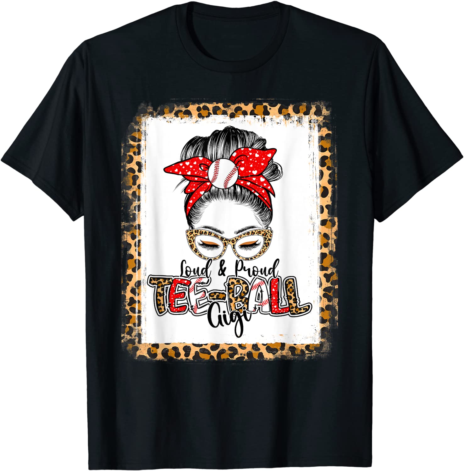 Loud & Proud Tee-ball Gigi Messy Bun Leopard Bleached Tee Shirt