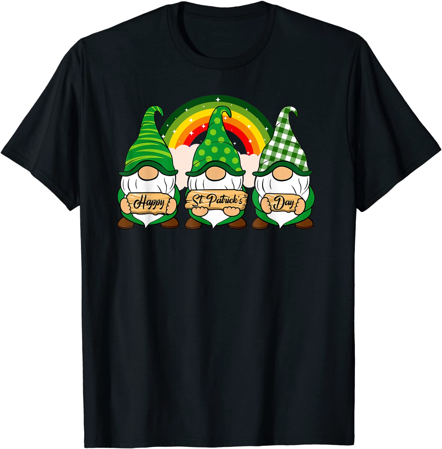 Lucky Rainbow Gnomes Holding Shamrock Happy St Patricks Day Tee Shirt