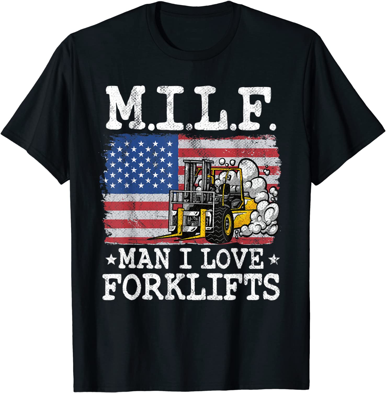 M.I.L.F. Man I Love Forklifts American Flag Forklift Driver Tee Shirt